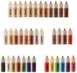 37 Pieces Kit (0.25 ounce bottles) 12 Foundations 12 Blush Highlighter 7 Adjusters 6 Hi Def . Complete Professional Set with all the key items from every category neccessary for cosmetic airbrushing. Although designed to be applied with an airbrush, S/B is blendable and can also be applied by fingertips, brush or sponge. The natural properties of silicone impart a soft-focus effect that radiates a healthy and youthful glow on any skin type. Naturally lightweight and flawless, S/B mimics skin texture for a beautiful finish. Using only a few drops, it delivers sheer to opaque coverage. A true long-lasting formula which holds up through hours of studio lights, yet removes easily with our No Soap Cleanser or traditional makeup remover. The Complete 37 S/B Makeup Starter Set in 1/4 oz. bottles